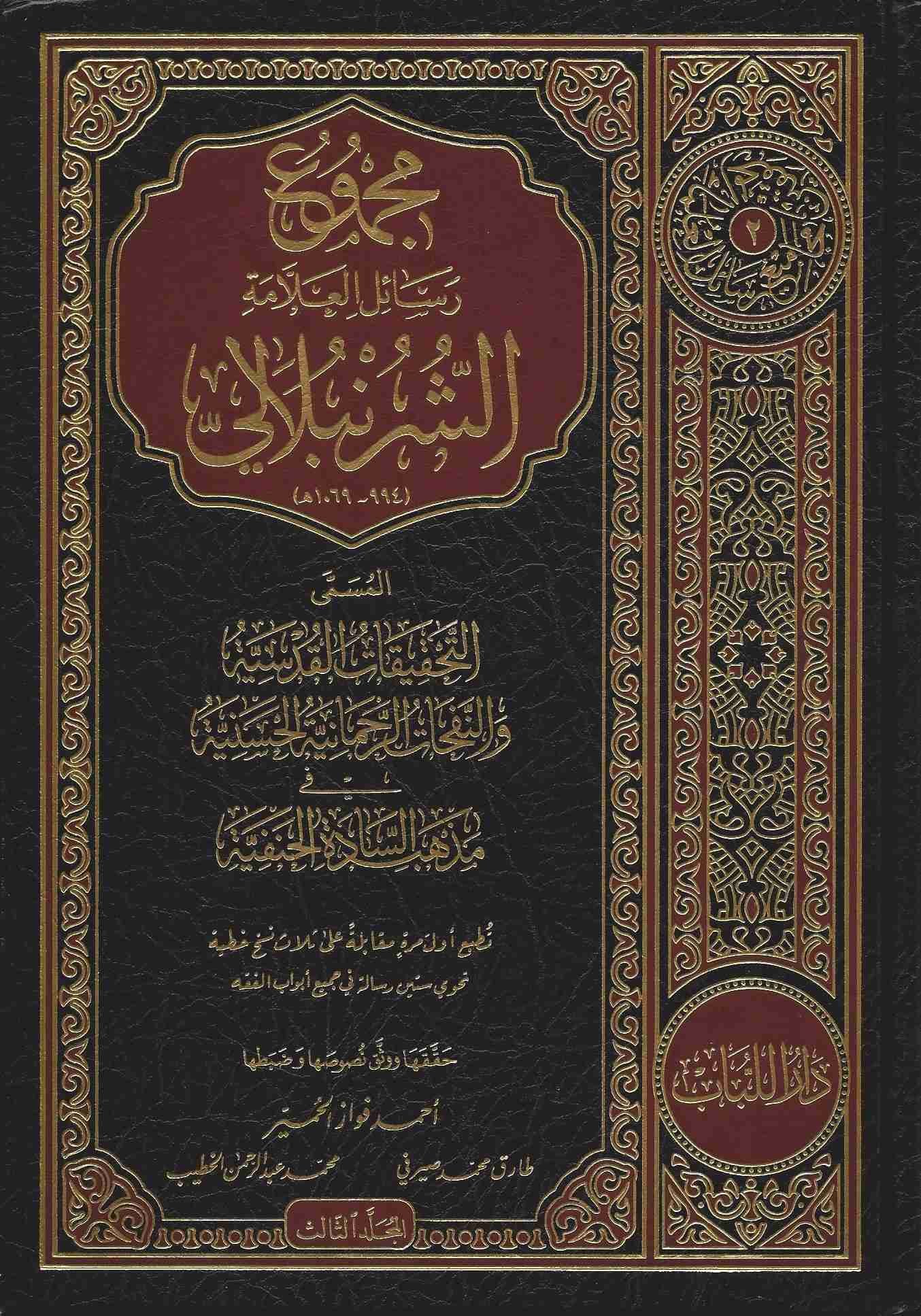 هو “التحقيقات القدسية والنفحات الرحمانية الحسنية في مذهب السادة الحنفية” يتكون من ثلاثة مجلدات ويحتوي على 1570 صفحة ويتضمن المجموع رسائل العلامة الشرنبلالي التي تتناول مواضيع فقهية وأصولية متنوعة خاصة في المذهب الحنفي